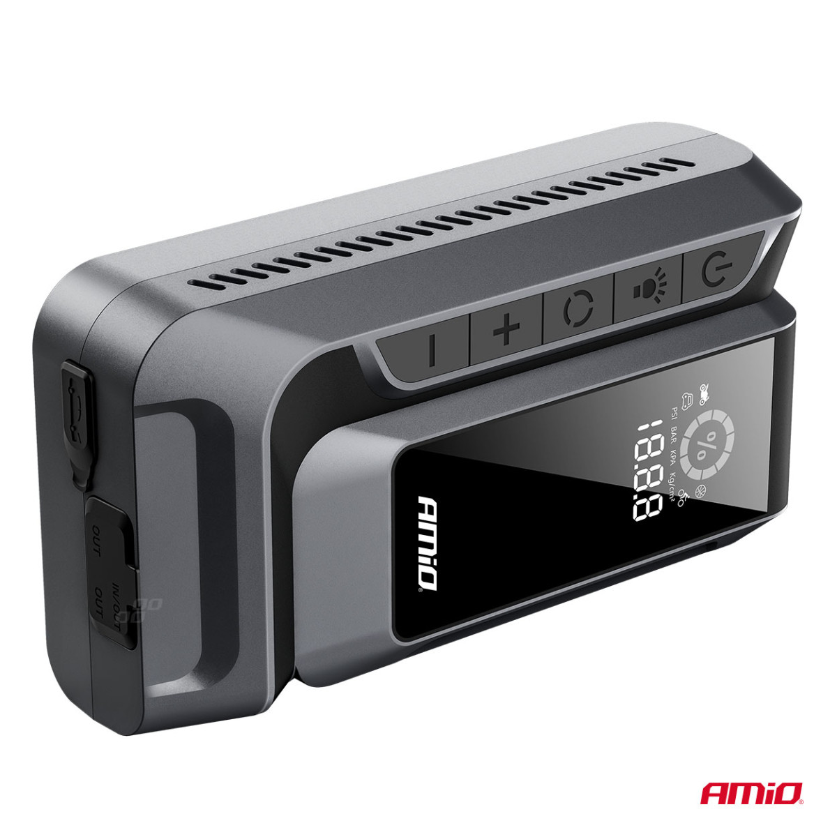 The AMiO 4in1 12Ah jump starter is a professional and multifunctional device that combines the functions of a jump starter, power bank, air compressor and LED flashlight. Thanks to its large battery capacity and high starting current, it is perfect for even the most demanding conditions - both in car repair shops and for everyday use by drivers.