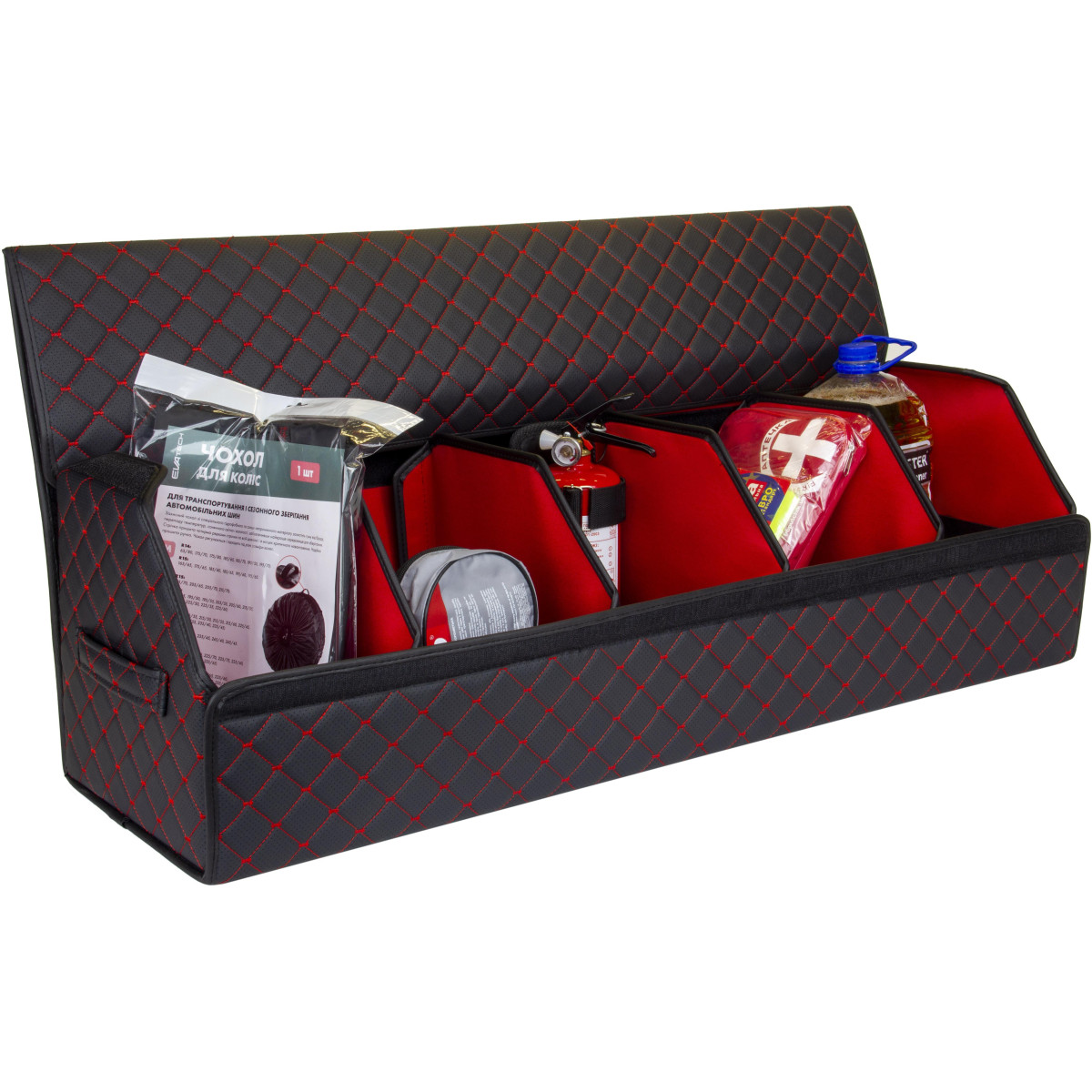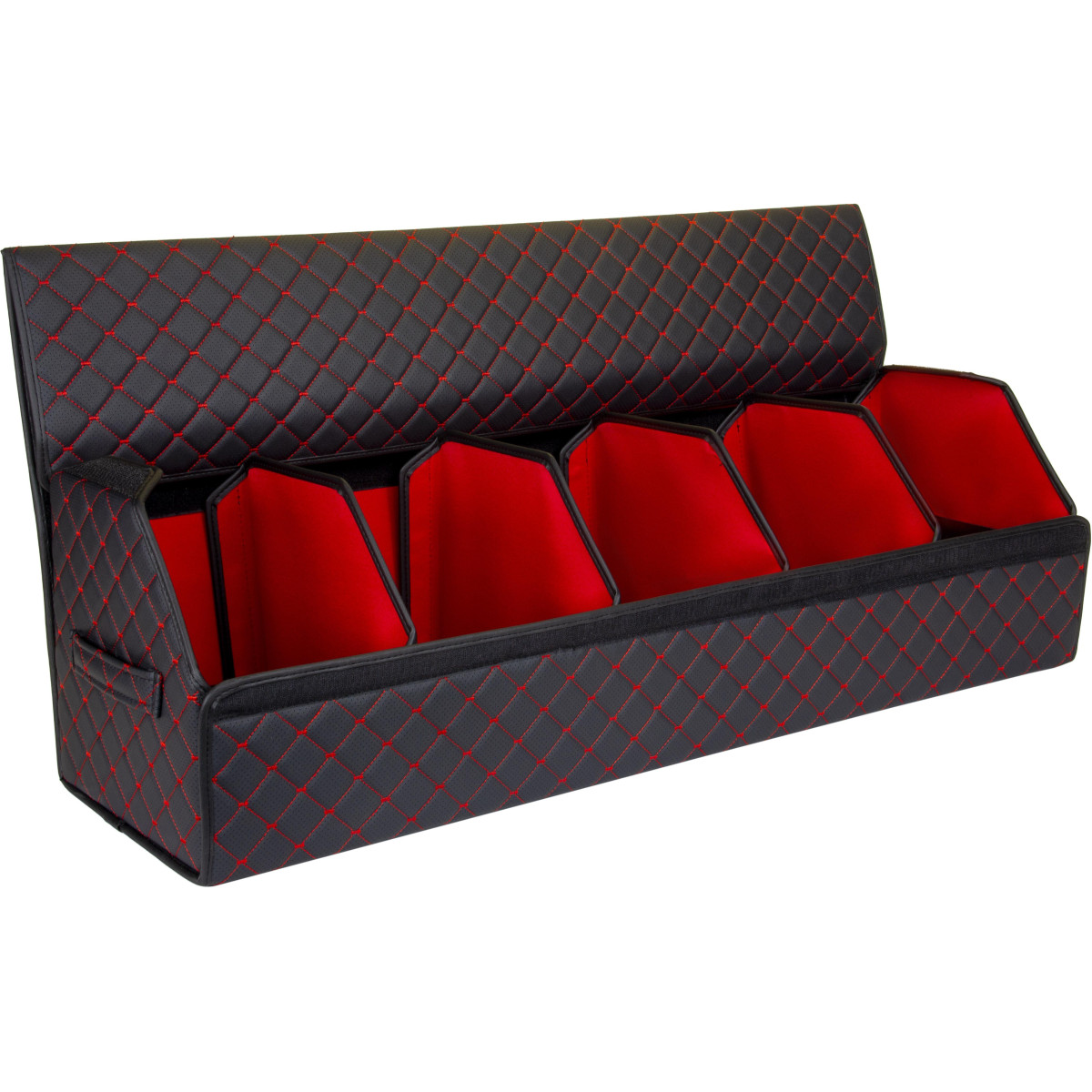 EVAtech Trunk Organizer ECO XXL 30x30x100 cm - black / black edges / red stitches / red interior