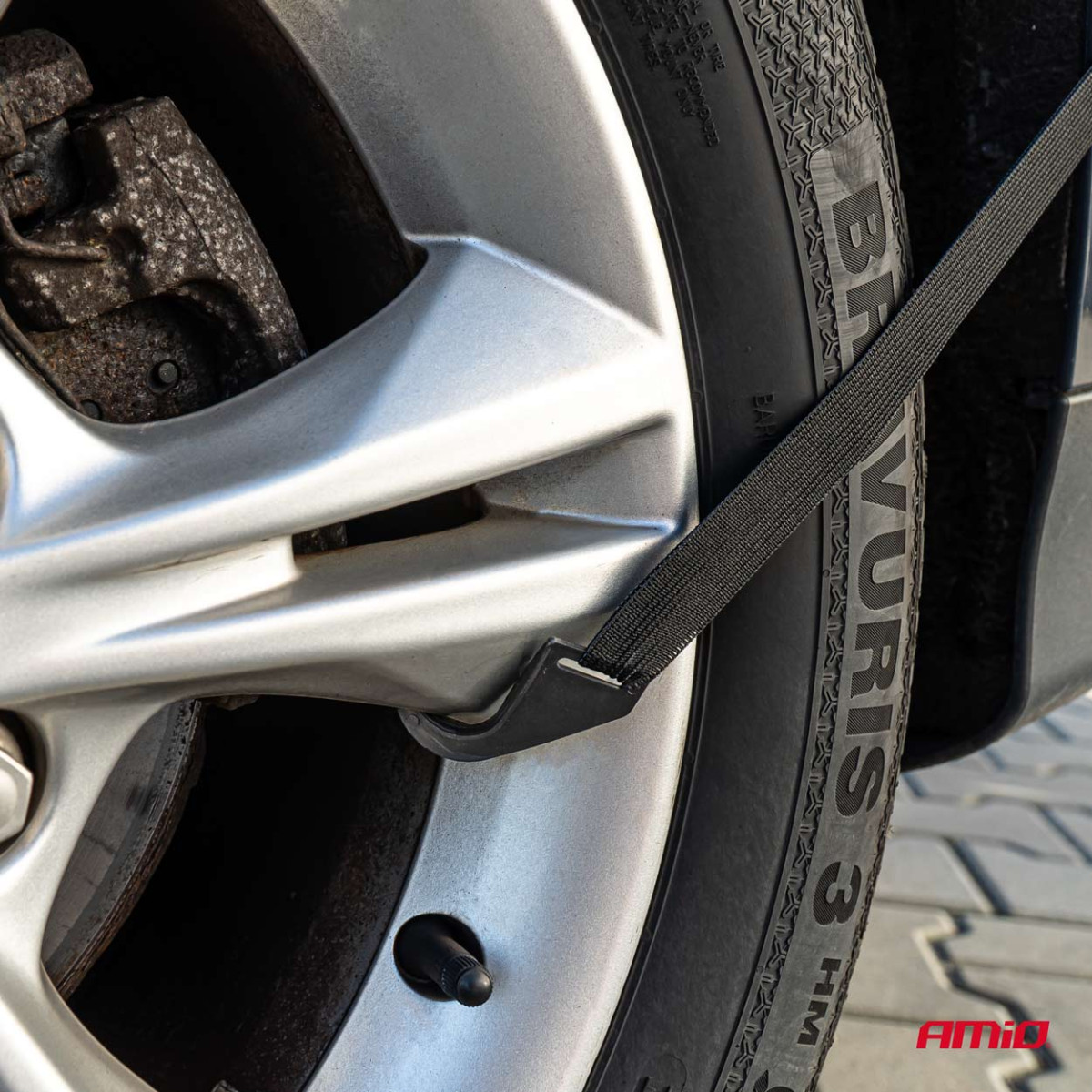 The attachment is simple and intuitive - the cover is attached with rubber bands with plastic hooks that can be attached to the rims or wheel covers. They do not scratch the rims.