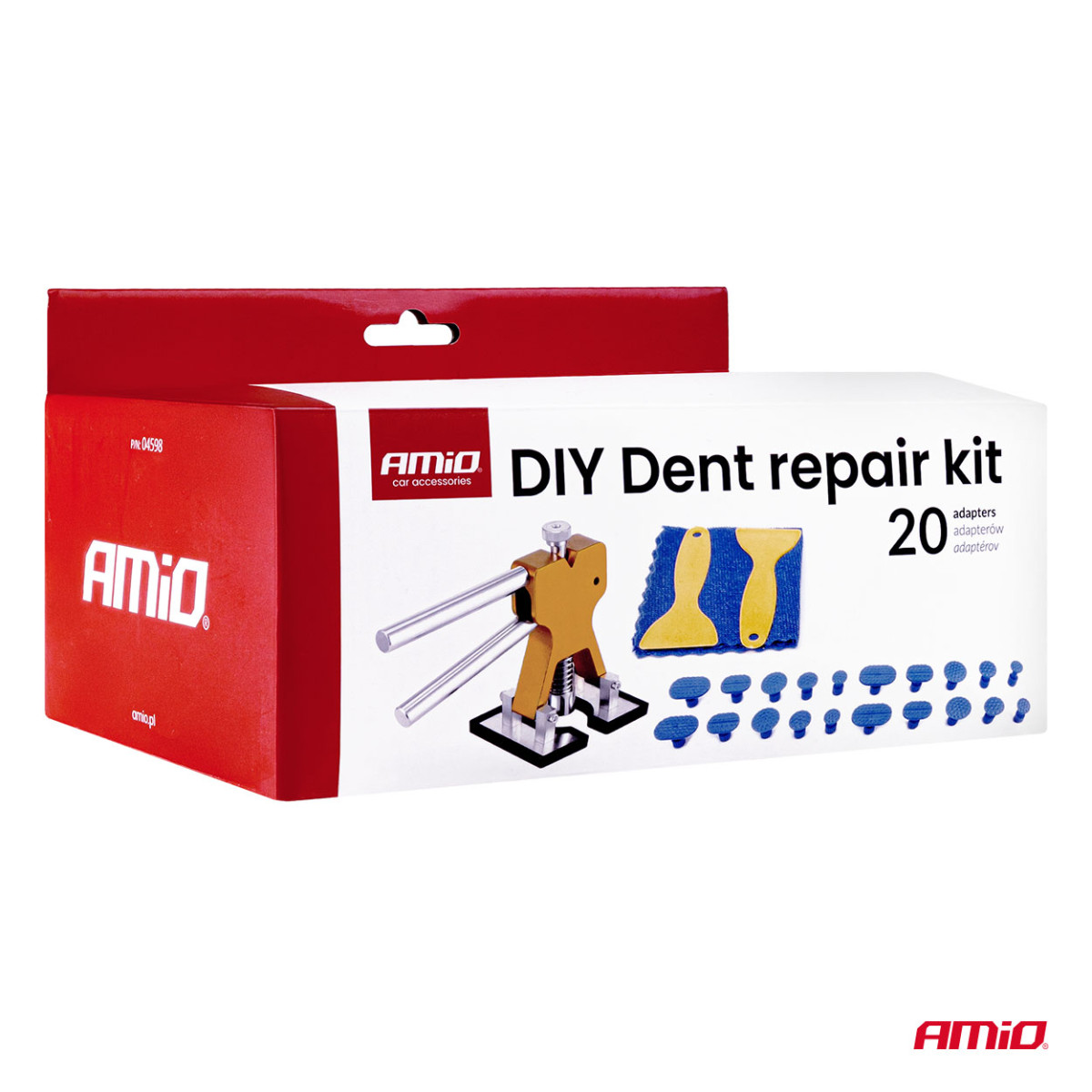 The set includes 20 interchangeable tips in various diameters, providing complete flexibility when working with different types of dents - from small spots to larger surface dents. The ergonomic tool and sturdy construction guarantee working comfort and consistent results both in professional service and at home.
