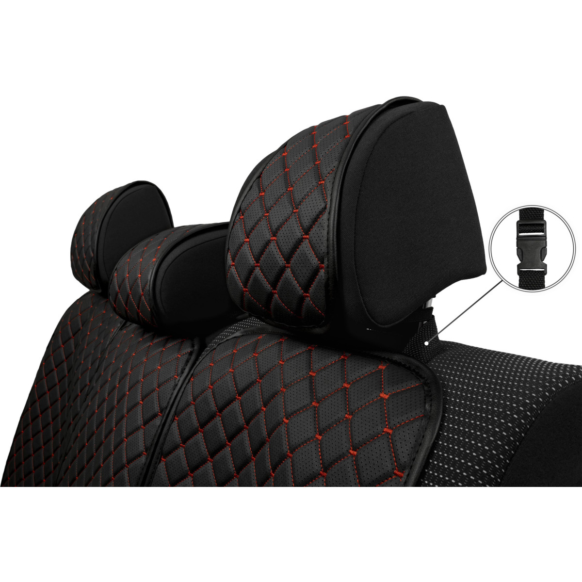 Seats užvalkalų komplektas EVAtech ECO Basic, 3 pcs- black / black edges / red interior